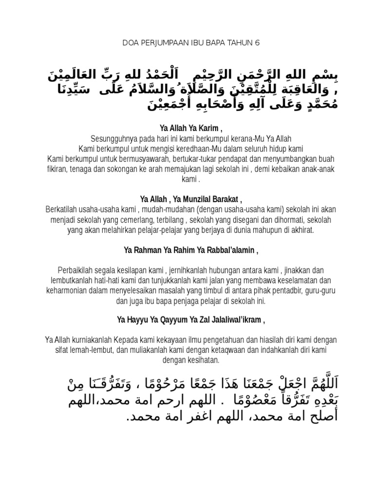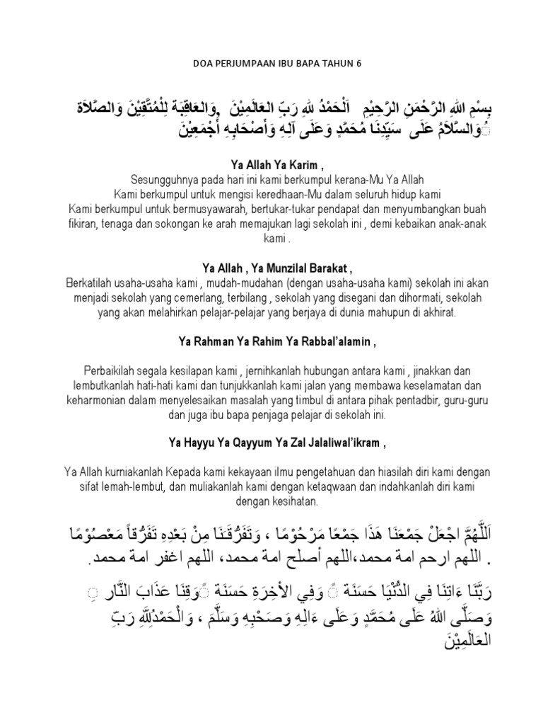 Doa Perjumpaan Ibu Bapa Tahun 6 Pdf