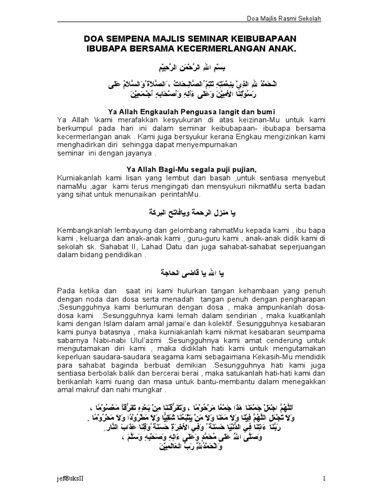 Doa Sempena Majlis Seminar Keibubapaan Pdf